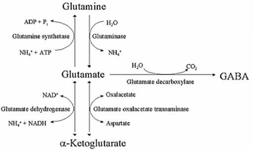 De nombreux processus physiologiques du corps exigent un équilibre entre le glutamate et le GABA, ce qui est théoriquement facile à réaliser puisque le glutamate, la glutamine, l'alpha-ketoglutarate, et le GABA peut être interconvertis via les enzymes décrits ci-dessus.
